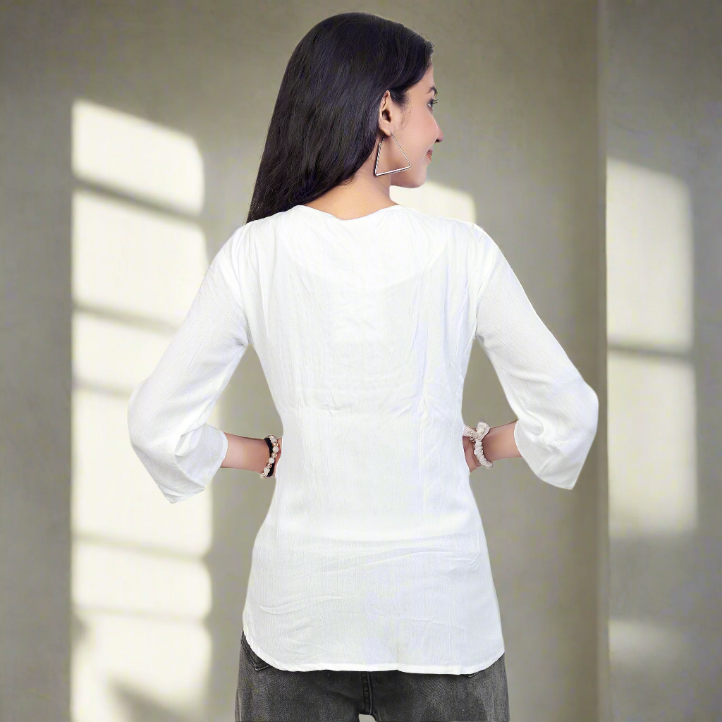 Embroidered White Short Kurti for Women & Girls | Stylish Casual Ethnic Top